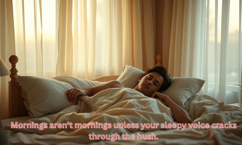 - “Mornings aren’t mornings unless your sleepy voice cracks through the hush.”